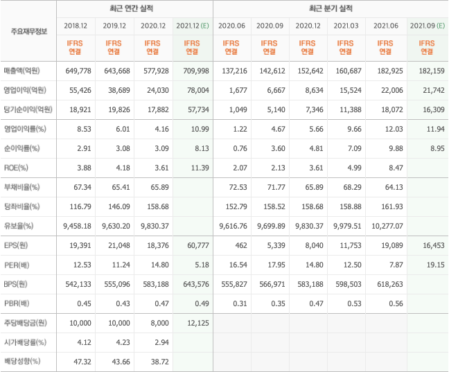 - 봉형강, 후판, 냉연판재류 수요 증가 및 판가가 상승한 가운데 운송 및 무역 부문의 판매 증가와 페럼인프라 인수에 따른 매출 발생으로 전년동기대비 양호한 매출 성장.