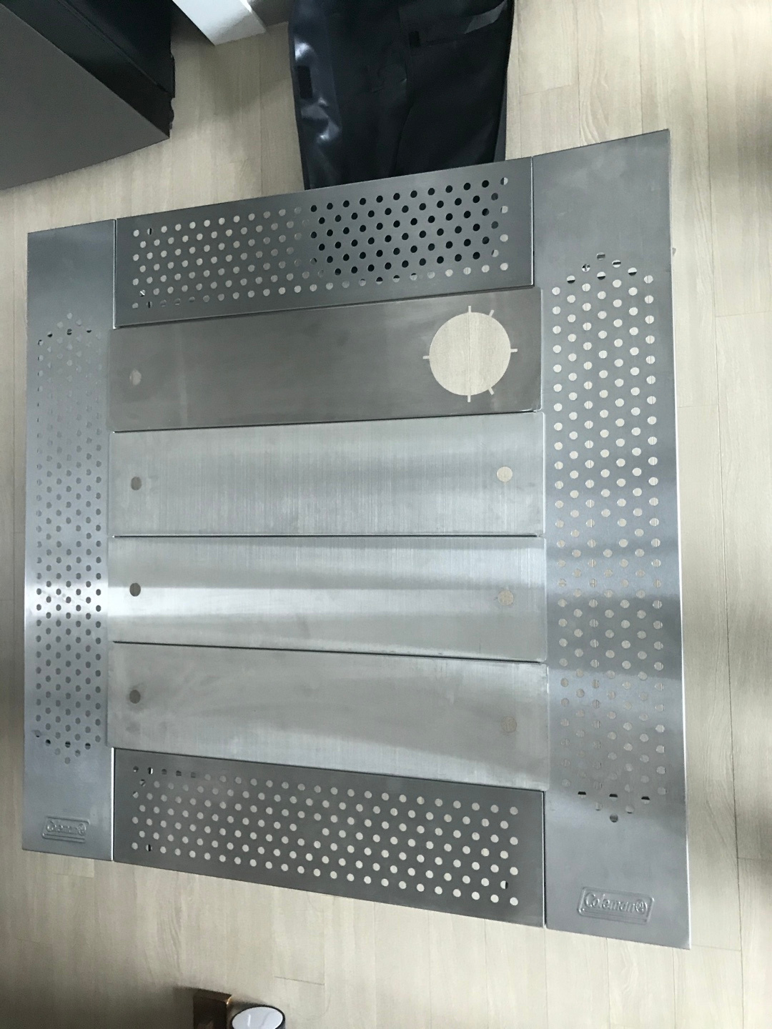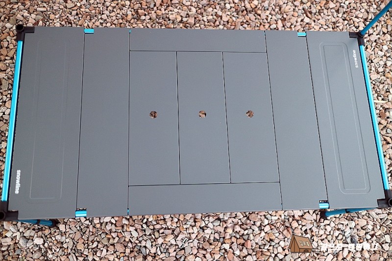 화로 테이블은 보통 직사각형의 상판 4개를 체결해서 중앙부분은 화로를 놓고 테두리부분은 물건을 올려놓을수 있는 방식입니다. 그래서 화로를 사용안하고 테이블에 버너를 놓고 찌개라던가 다른음식들을 먹을때는 사용이 불가능합니다. 그럼 이런경우에는 다른 테이블을 사용해야되서 되는데 저는 모든 캠핑을 테이블 하나로 끝내고 싶어서 찾아보니 상판4개를 상판의 넓은면끼리 체결하면 일반 테이블처럼 사용할수 있는 테이블이 있어서 사려고 했는데 가격이 비싸서 결국 저런 기능이 없는 철재로된 일반 화로테이블 리퍼제품을 구매했습니다.