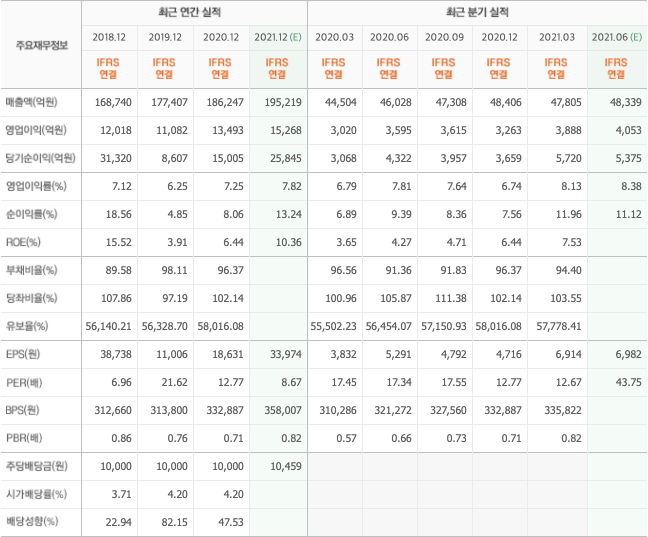 - 매출 성장에 따른 원가율 하락 및 판관비 부담 완화로 영업이익률 전년대비 상승, 법인세 증가에도 영업외수지 개선으로 순이익률도 전년대비 상승.