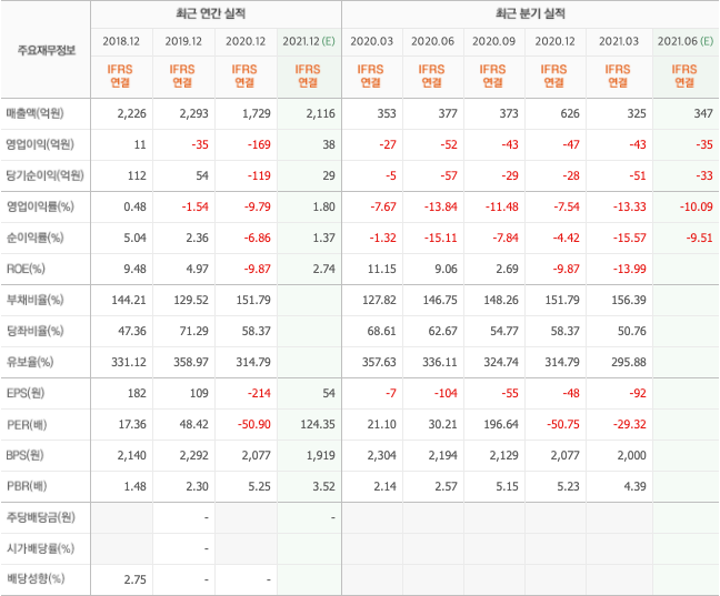 - 매출 감소에 따른 원가 및 판관비 부담 확대로 영업이익률은 전년 동기 대비 큰 폭 하락하였으며, 금융수지 저하 및 법인세 증가로 순이익은 적자 전환함.
